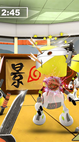 2、如果有时你想放松心情,可以设置自动战斗模式,解放你的双手,轻松享受无分区的卡通游戏画面,选择心仪的武器开始击打木偶;
