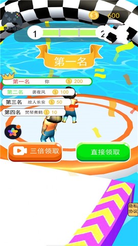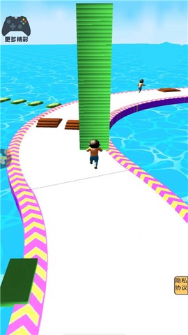2. 在特定场景中展开比赛,收集尽可能多的木板,遇到断桥时,迅速修复才能继续前进。