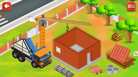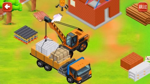 3. 接着点击吊车帮你搭建房屋的顶部,将卡车上的屋顶吊起并移动到房屋上。