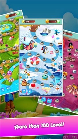 1、每一关都是由五彩缤纷的糖果构成,仿佛置身于梦幻般的世界,手指轻轻一滑,便可享受糖果消除后的美味快感;