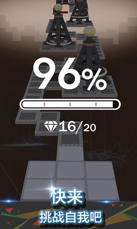 1、新手刚接触第一关可能会觉得有点手忙脚乱,关键是控制好手指滑动的幅度和速度。开局道路比较宽,但要注意那些带花纹的砖块,一靠近就会突然升起,走橙色的安全区域就行,小心别滑过头掉下去。钻石通常放在边缘,稳着点就能吃到。