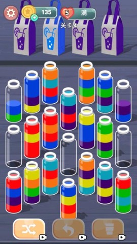 3. 无时间与步数限制:游戏允许灵活交换液体,玩家可依靠智慧将所有液体完美分类,只要达成组合要求便能通关。