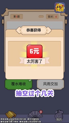 1、采用答题变现机制,玩家通过完成成语填空任务可直接获得现金红包奖励,实现娱乐收益双赢。