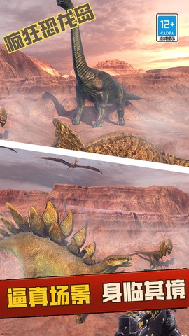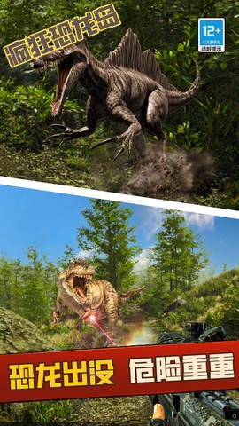 疯狂恐龙岛是一款基于侏罗纪时代背景的3D真实模拟冒险射击游戏。玩家将扮演猎人角色,手持步枪在恶劣天气与危机四伏的丛林环境中进行侦察,搜寻并击杀甲龙、双脊龙、霸王龙等各类凶猛恐龙,以完成指定任务。