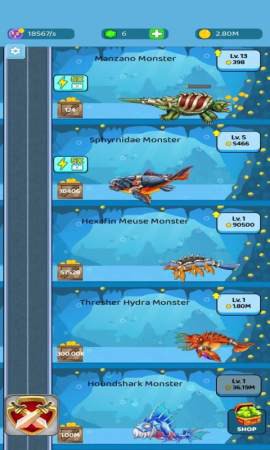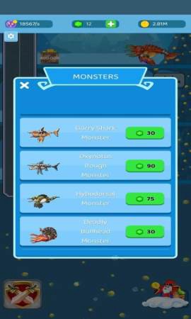 获取金币的方式多种多样,积攒足够资金后,就能随心所欲地购买你心仪的生物。记住,高等级的海洋生物不仅外形更酷炫,战斗力也绝对超乎你的想象。